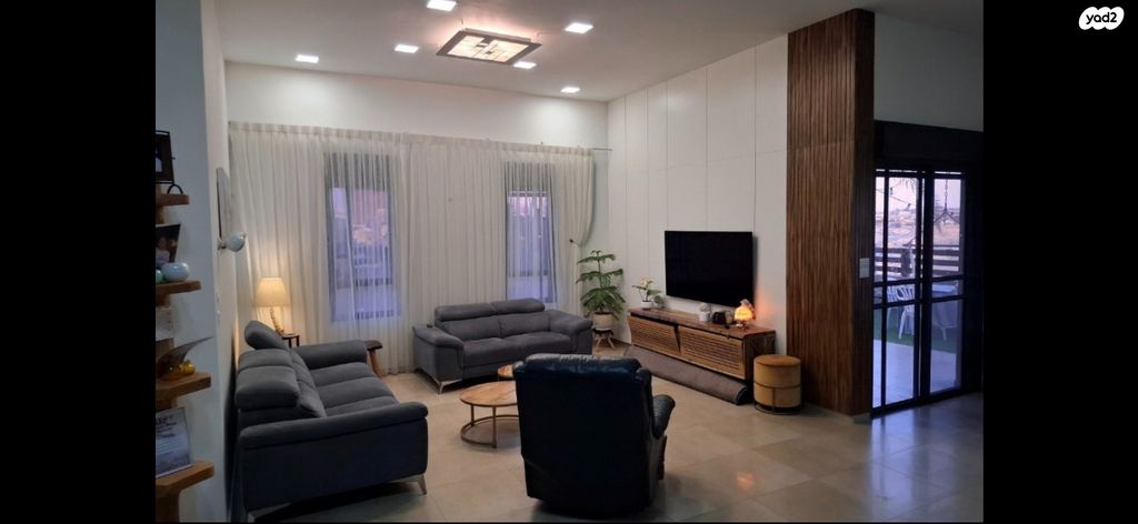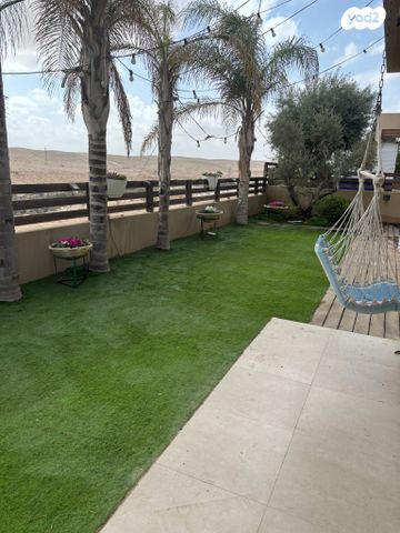 וילה מפלס 1,פינתית,גינה נושקת לנוף מידברי של נחל באר שבע,יש פרטיות,יציאה מהסלון לגינה ולמקום לארוחת בוקר או ערב בשבתות.