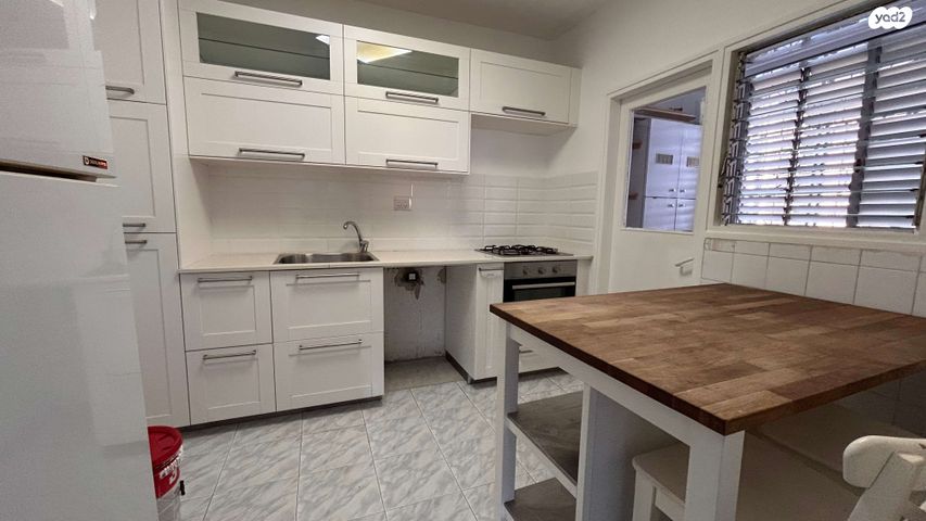 מטבח מרווח עם גישה למזווה ומרפסת שירות.