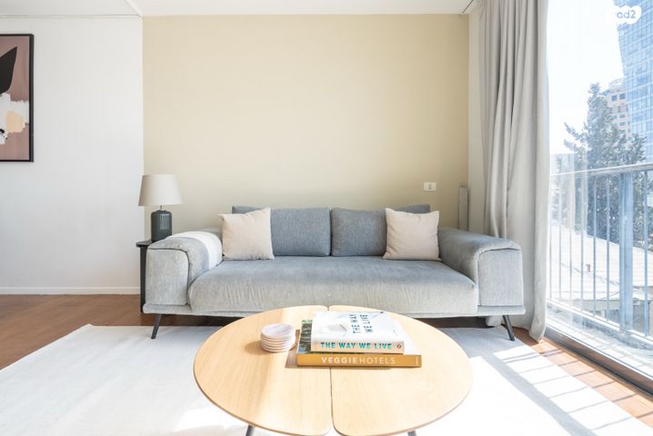ריהוט יפהפה, מטבח מאובזר במלואו, טלוויזיה חכמה ורמקול אלחוטי איכותי הם רק חלק מהמתקנים שתמצאו בדירת שני חדרי שינה זו. מיקום אידיאלי בתל אביב. 2 מיטות קווין, 160 ס"מ.