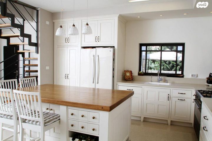 מטבח בעיצוב כפרי וחמים עם איי גדול .