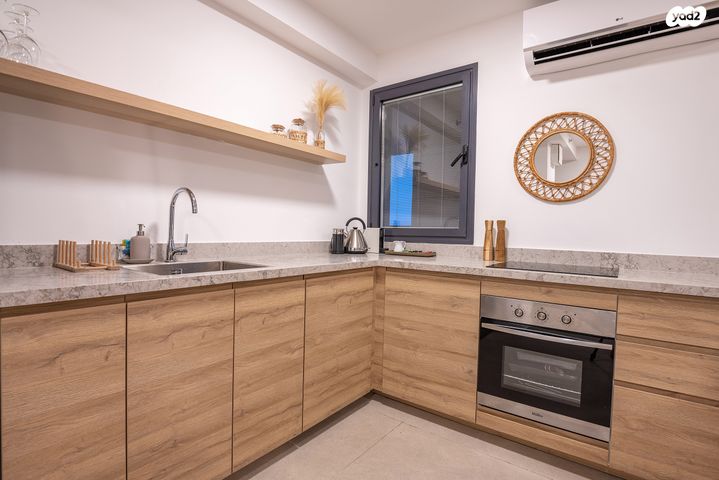 סלון מפנק, מטבח מצוייד היטב (מדיח, תנור, כיריים, אינדוקציה, מקרר, ועוד) וריהוט מלא בחדר השינה כולל ארונות.