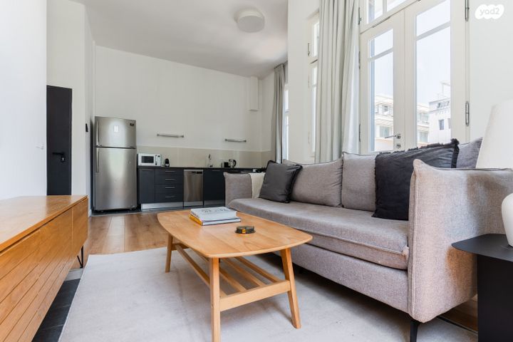 "יהיה קל פשוט להופיע ולהתחיל לגור בדירה המרוהטת בסגנון Blueground אופנתי זה, הכוללת מטבח מאובזר במלואו, סלון יפהפה ותמיכה ייעודית בקומת הקרקע. בין מתקני הבניין הייחודיים לדירת שני חדרי שינה זו נכללים: