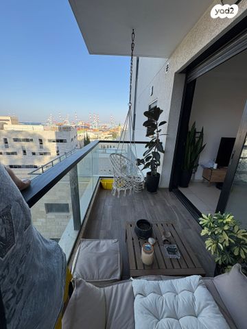 סלון מואר עם תריס חשמלי ויציאה למרפסת ונוף לים