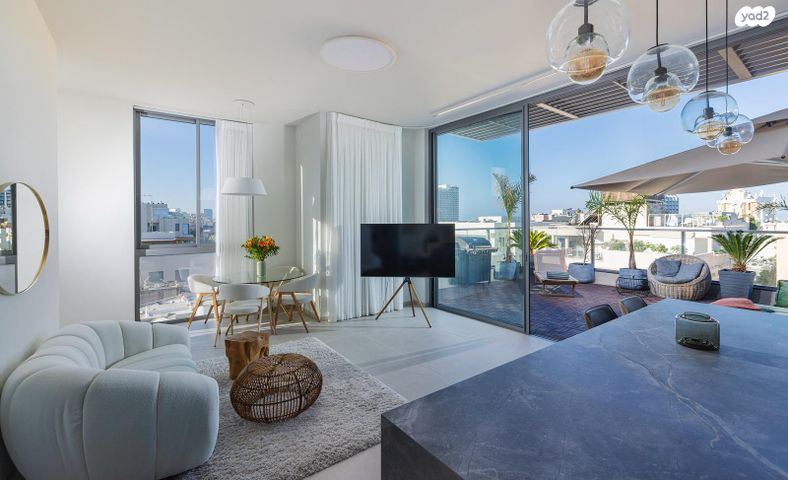 נכס מס' 129 פנטהאוז אינטימי ומפנק במיקום מעולה פנטהאוז 3 חדרים כ85 מ"ר כ60 מ"ר מרפסות קומה 6 מרוהטת קומפלט ומוכנה לכניסה מחיר: 25,000 ש"ח לחודש