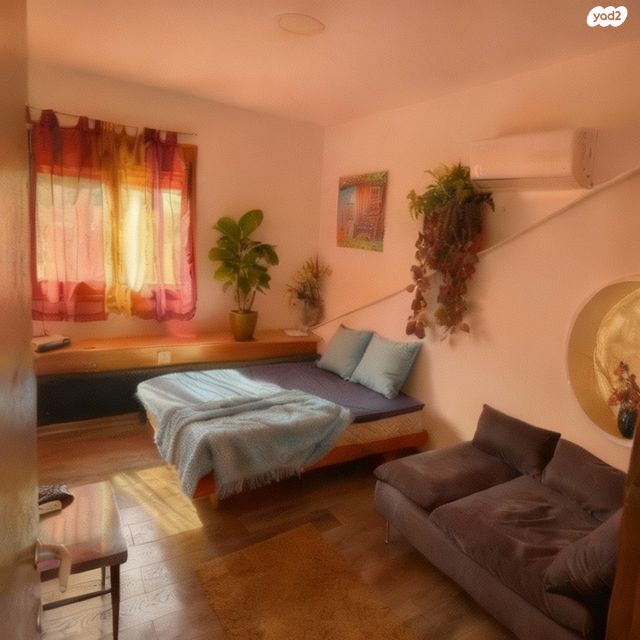 בדירה 2 חדרי שינה, מקלחת מרווחת ושרותים, מרפסת, מטבחון ופינת אוכל.