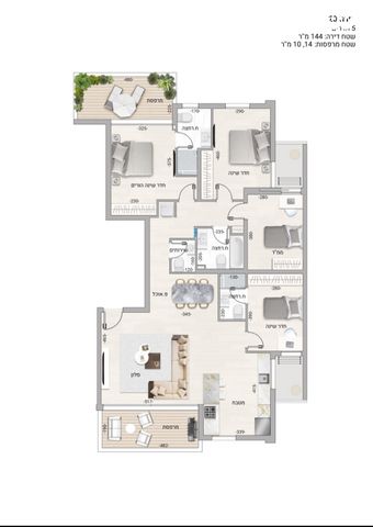 להשכרה בפרויקט יוקרתי במרכז רעננה דירת 5 חדרים ע-נ-ק-י-ת! 145 מ"ר בנוי + מרפסת מהסלון למזרח פתוח עד ההרים ומרפסת מסויטת ההורים למערב. 4 חדרי שירותים 2 מקלחות חדר אמבטיה 2 חדרי סויטות מטבח משודרג עם אי חניה תת קרקעית פרטית רגילה