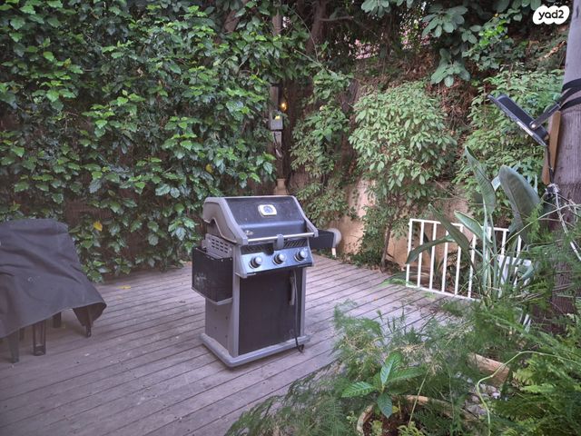* גינה מטופחת עם דק מושלם לארוחות ובילויים משפחתיים