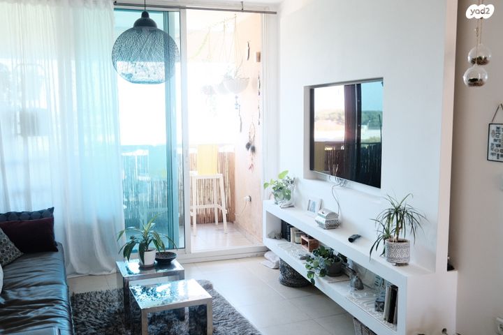 סלון טלוויזיה ארון ומיטה בחדר שינה