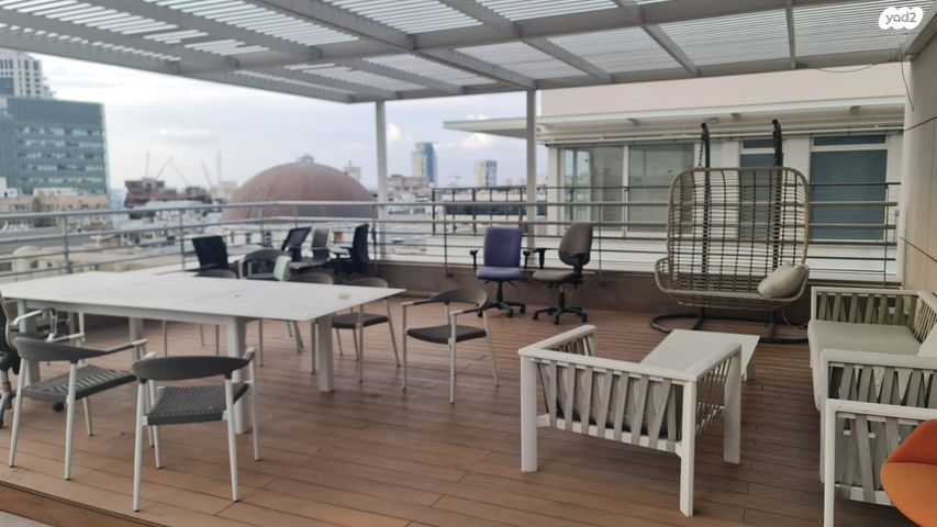 משרד ייחודי להשכרה במתחם רוטשילד בתל אביב כולל מרפסת פרטית ענקית בשטח של כ-130 מטר מושלמת לאירועי חברה והפי האוורס.