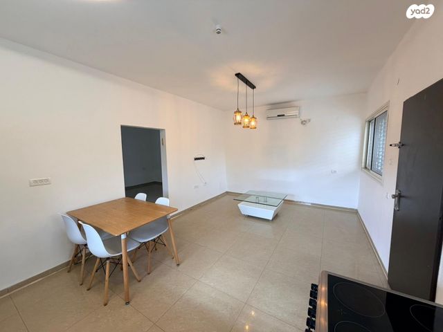 מקרר, תנור, שולחן סלון ושולחן אוכל.