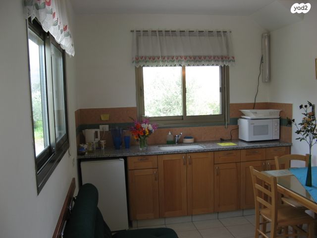 בחדר כניסה (הכולל פינת מטבח ופינת אוכל): שולחן + כיסאות, מקרר, ארונות מטבח.
