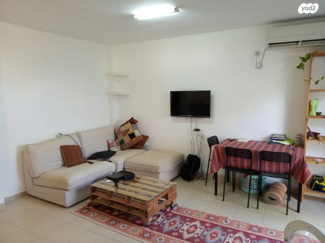 דירת 2 חדרים (סלון ומטבח גדולים + חדר שינה רחב) בגודל כ- 40 מ"ר + חצר פרטית של כ20 מ"ר (החצר לא רשומה בטאבו).