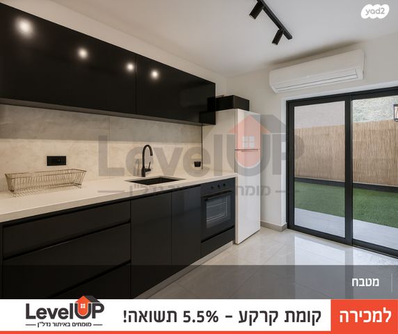 דירת 2 חדרים משופצת מהיסוד, ריצוף, מזגנים, אינטסלציה, חשמל, מטבח, חלונות אלומיניום, חצר דשא סינטטי (חצר לא בטאבו)