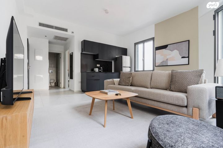 דירת 1 חדר מעוצבת בקפידה עם ריהוט אלגנטי, מטבח מאובזר, מצעים יוקרתיים, טלוויזיה חכמה ועוד. תהנו מאווירת תל אביב או תרגעו בבית. מיטת קווין (160 ס"מ).