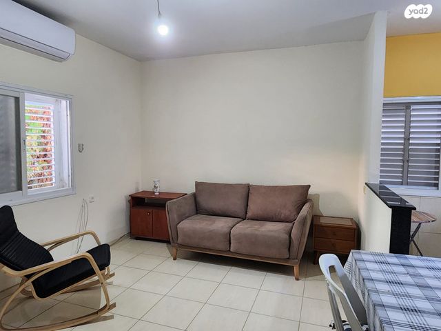 מיטה זוגית בחדר שינה, מיטה רגילה בחצי חדר, כורסה, כסא עץ מתנדנד, 2 ארונות, 3 שולחנות, שידה, מזגן, מקרר בינוני, תנור גז, מיקרוגל, פלטה חשמלית. יש מקום למכונת כביסה.