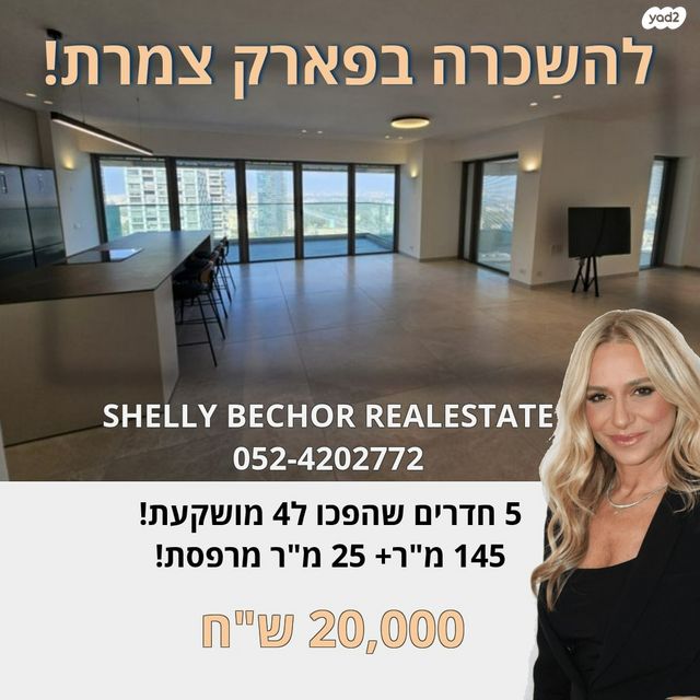 להשכרה בפארק צמרת, דירת 5 חדרים שהפכו ל4, מושקעת, משופצת מהיסוד, מעוצבת ומאובזרת, 145 מ"ר+ 25 מ"ר מרפסת עם נוף פתוח! מטבח מושקע, מעוצב ומאובזר במוצרי חשמל מאסטר הורים מפואר, מאובזר בארונות קיר ובגופי תאורה. 2 חניות ומחסן כניסה ב1/3 למשרדנו נכסים רבים להשכרה/ למכירה בשכונות הצפוניות של ת"א ובמגדלים. משרדנו נמצא במרכז שוסטר, אחימאיר 17, ת"א- שלי בכור- תיווך נכסי יוקרה