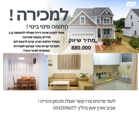 - למכירה בהזדמנות דירת שלושה חדרים קרוב לעיר קומה ראשונה שירה מסודרת אך זקוקה לחידוש . מיקום מעולה צופה לפארק ענק