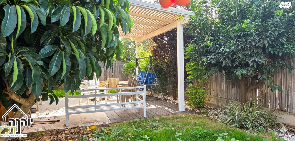 מרחב האירוח גדול עם יציאה לחצר האחורית, לעבר פרגולה גדולה.