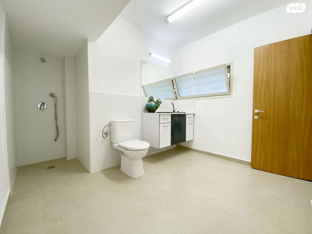 2 חדרים עם מרפסת מקורה וחצר גדולה.