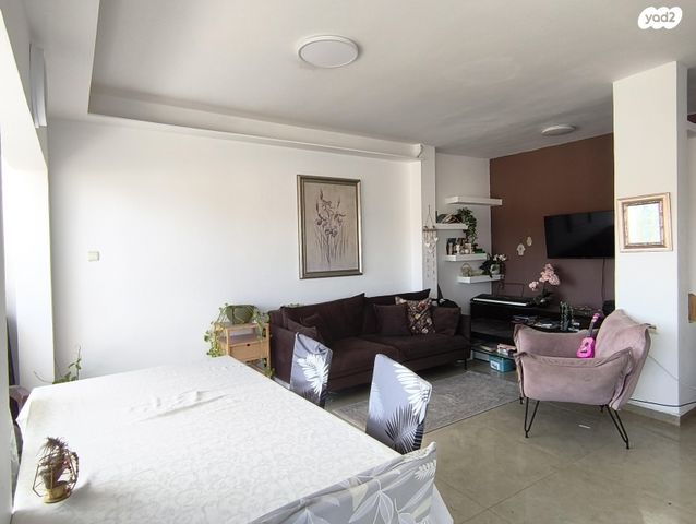 פינת אוכל מתרחב עם 5 כיסאות אוכל, שולחן קפה ומיזנון, מיטת קומותיים לילדים מ"עצמלה" שידה לבנה עם 6 מגירות.
