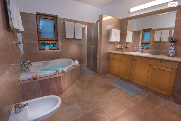 דירת גן יוקרתית בוילה ברחוב שקט ללא מוצא. נוף להרים ולחורש. גינה עם עצים, בריכה, דק ופינות ישיבה עם פרגולה. 3 חדרי שינה, 2 מקלחות עם שירותים וג'קוזי, 2 חדרי ארונות ומטבח מושלם.