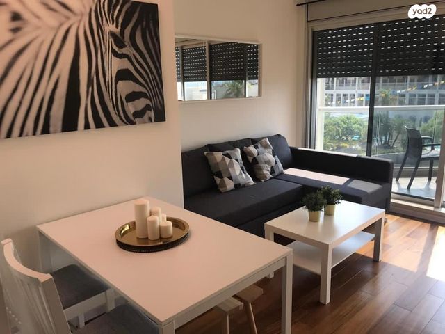 דירת שני חדרים, ממ"ד, מעלית, מרפסת שמש משקיפה לחצר ירוקה ובריכת שחיה . הנוף למרינה.