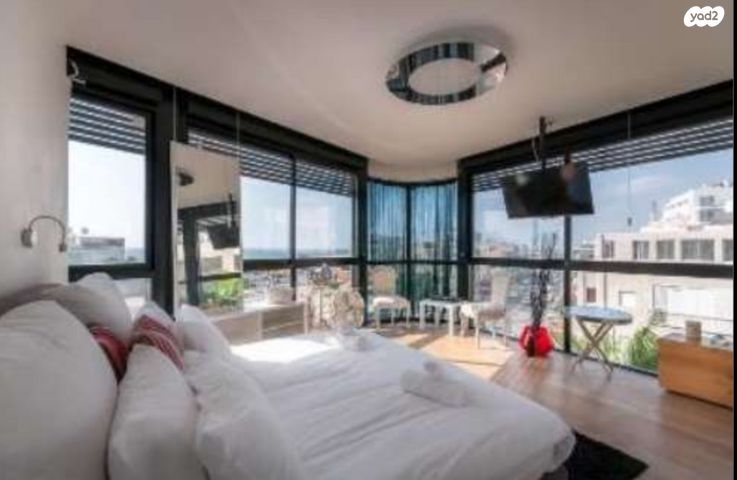 להשכרה ברחוב הירקון צפון פינת ירמיהו דופלקס פנטהאוז מפלס תחתון : מטבח חדר שינה רחב ידיים ובו חדר רחצה. המפלס העליון : מטבח חדר מגורים הכולל מטבח וממנו יציאה למרפסת גג עם נוף חלקי לים התיכון , חדר רחצה. במרפסת הגג קיים גאקוזי וחדרון המשמש ל סאונה.