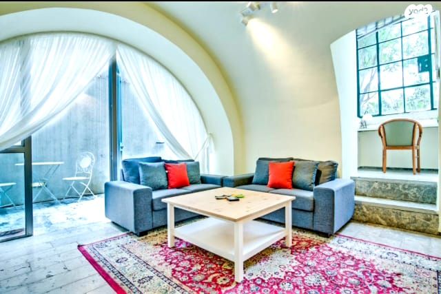 מבנה קשתות עם סלון ומטבח פתוחים ומוארים כזה שעושה נעים בלב