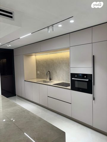 הנמכת תקרות גבס בכל הדירה שילוב עיצוב ואקוסטיקה, גופי תאורה יוקרתיים של Flos Italy ריצוף יוקרתי 120x 120, מקרר אינטגרלי , תנור משולב מיקרו, מדיח אינטגרלי, ארון זכוכית מעוצב של Divine, משטחי עבודה ואי משיש גרניט-פורצלן Italgraniti Group Italy, מטבח פורמייקה אקרילית בגוון Sahara, שילוב מושלם של יוקרה, עמידות ופונקציונליות, כניסת הבניין עם קודן וצ'יפ