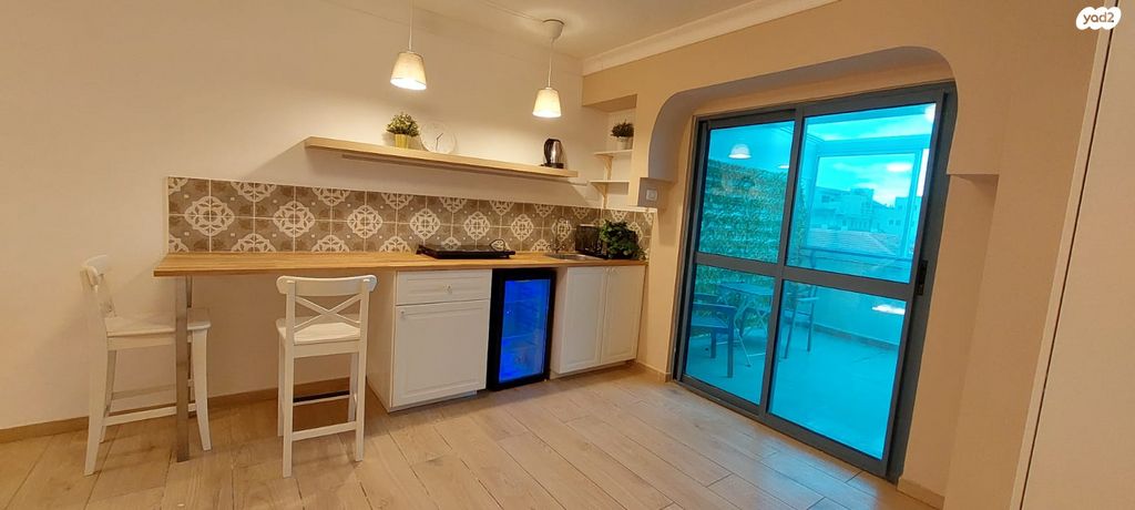 בבניין החלונות היוקרתי . ממוקמת בין שוק מחנה יהודה ורחוב בן יהודה . יש ארבע מעליות כניסות מי רחוב אגריפס ומי רחוב יפו מול תחנת רכבת הקלה דווידקה קרוב לכל .הדירה מתחלקת בין דירת מגורים של 25 מ"ר ומרפסת פרטית של 18 מ"ר עם סגירת חורף שיכולה להפתח או להסגר .