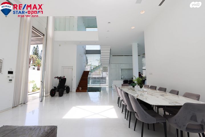 וילה בעיצוב מודרני מינימליסטי על מגרש של כ 516 מר ובנוי כ 520 מר עם כל פרט מוקפד מהשיש הלבן והבריכה הענקית בגודל בנוסף למפלים היקפים סביב לבית ועד פטיו פתוח בגובה. שמונה וחצי מ ודלת כניסה בגובה דומה כמו חלל של גלריה פרטית