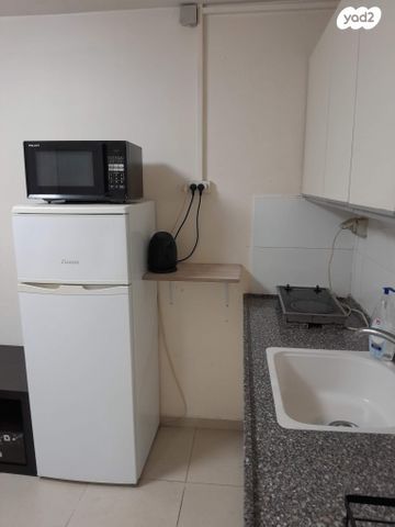 - מטבח+מקרר+מיקרוגל+קומקוס+מראה גדולה+ספה+שולחן קטן