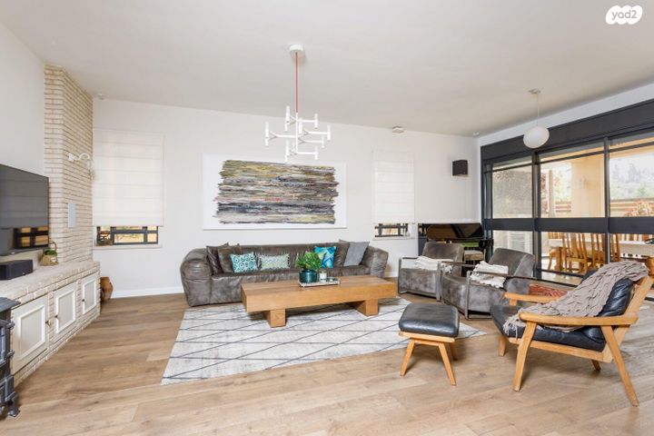 סלון גדול עם יציאה ישירה לגינה מטופחת מושלם למשפחה שמחפשת שילוב של נוחות, מרחב וירוק בעיניים.