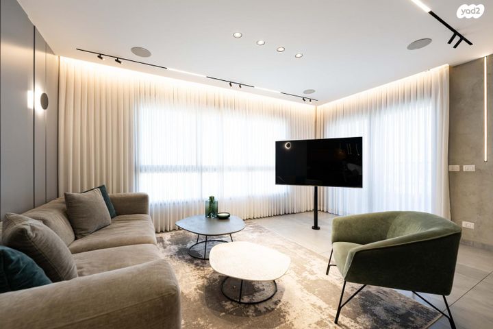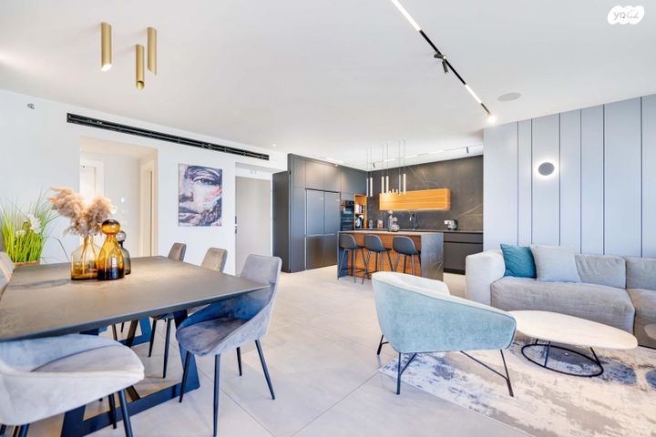 מטבח משודרג ריצוף גדול פרקטים בחדרים וילונות חשמליים