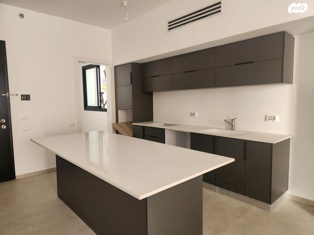 * מטבח Regba מעוצב עם אי גדול.