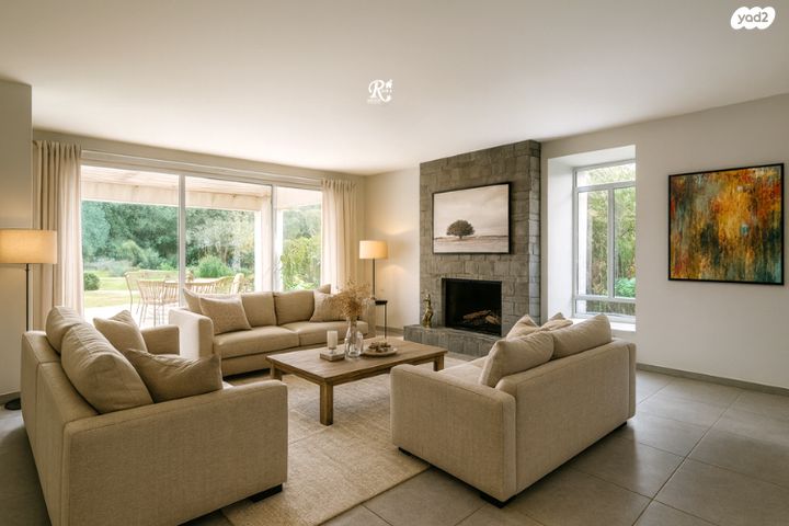 In Savyon-Gani Yehuda! A bright and comfortable luxury family home, XL living room + fireplace, kitchen with island, dining room for 16 diners, family room, master suite facing the view, lawn surrounded by vegetation, at the owner's request, the photos are not identical to the property. Here you can live and raise your children in a rural, luxurious and pastoral atmosphere.