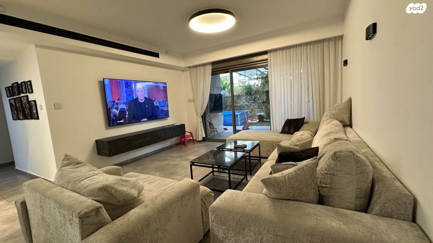 סלון גדול ומואר עם יציאה ישירה לגינה.
