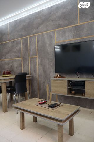 בסלון- ספה נפתחת למיטה מתאימה לאירוח , שולחן סלון וחלון עם נוף לים. טלוויזיה גדולה עם שידת טלוויזיה ואינטרנט .