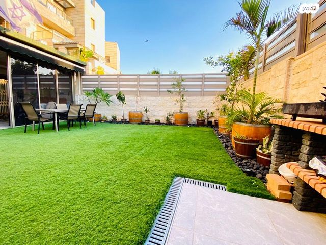 דירת גן 5 חדרים יפיפייה מתוחמת עם גדר דקורטיבית גבוהה , בניין 3 קומות מדורג, 8 דיירים , כניסה פרטית לדירת הגן ( לא מחדר מדרגות) .חדשה "בת" 5 . בנויה 130 מ"ר , גינה 130 מ"ר . מעוצבת מאובזרת ומושקעת כולל מטבח נדיר, פרקטיים בכל שטח הדירה . 2 חניות בטאבו . מחסן ממונדף, גינה עם גריל ובריכת ילדים .