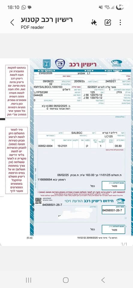 Daelim Besbi דיאלים בסבי יד 2, נקנה מחברה שרכשה את הקטנוע ישירות מהיבואן יד ראשונה. מחירון: 7900 מחיר מבוקש: 6500 קטנוע חסכוני ונוח ליום יום, נוסע טוב ושמור. נמכר בעקבות הפסקת שימוש בקטנוע. המחיר נמוך מהמחירון בשל: לוח שעונים תקול - לא עובד מד ק"מ וגם לא נראה מד הדלק, דורש החלפת לוח שעונים משען רגל שמאל למורכב - שבור מה כן: מצבר חדש כולל ארגז ללא מנעול