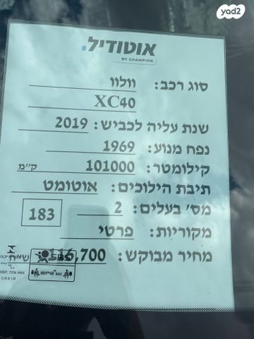 וולוו, XC40, בצבע תכלת מטאלי, שנת 2019, 101000 ק"מ יד שנייה מבעלות פרטית מנוע 2.0 ליטר טורבו עם 190 כ"ס 4*2 רמת גימור מומנטום . מחיר מבוקש 116.700 מחיר מבצע אוטו דיל 104.900 איש קשר עמי