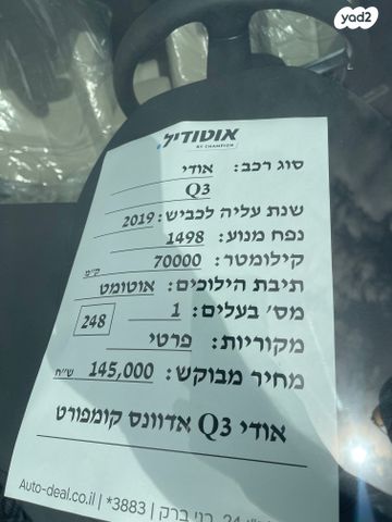 רכב יד ראשונה מבעלות פרטית דגם Advanced Comfort מנוע 1.5 עם 150 כ"ס - אוטו דיל בני ברק אפשרות טרייד אין ומימון עד 100 % איש קשר עמי