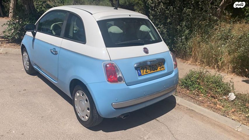 פיאט 500 קלאסית ומתוקה בצבע תכלת-לבן, שמורה במצב טוב. רכב אמין, חסכוני בדלק ונוח מאוד לנסיעה בעיר. * שנת 2015 * 100,000 ק"מ * טסט לשנה * שני צמיגים קדמיים חדשים יש פנס קטן בפח הקידמי (קוסמטי בלבד)