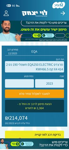 Mercedes Benz EQA 250 שנת 2023 רכב חשמלי מלא טווח נסיעה עד 510 קילומטר 20000 קילומטר בלבד יד ראשונה מצב מכני וחיצוני מעולה צבע אפור מטאלי אחריות יצרן מלאה עד מרץ 2027 מחירון 215000 נמכר ב 199000 הזדמנות אמיתית רכב שקט חזק חסכוני ומפנק רמת פרימיום של מרצדס במחיר משתלם