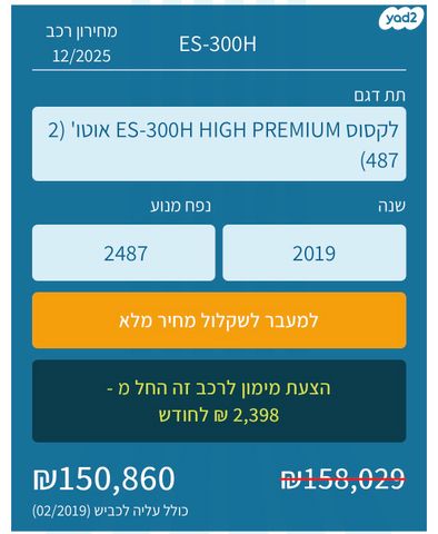 High Premium 300h היברידי אוט׳ 2.5 (178 כ״ס) [2018-2020]