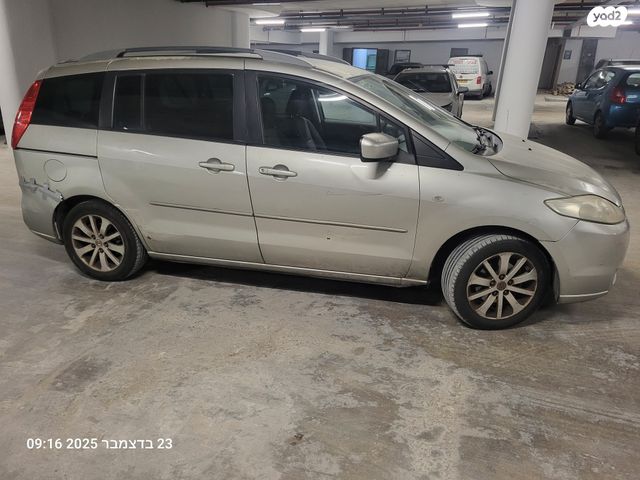 מאזדה 5 שנת 2006, 7 מקומות. קילומטראז' נמוך. מחיר מחירון 14,000 ומוכר ב 3,000 ש"ח, בגלל שצריך להעביר טסט עד 28/12/25 ואני לא רוצה להשקיע בו עוד כסף. נורת כרית אויר מהבהבת. מכה בפח בצד ימין אחורי. מצב מכני טוב. קיים מובילאיי