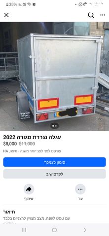 עגלה במצב חדש סגורה עם אישורים טסט לשנה לרציניים בלבד עומק 1.80 רוחב 1.50 גובה1.40