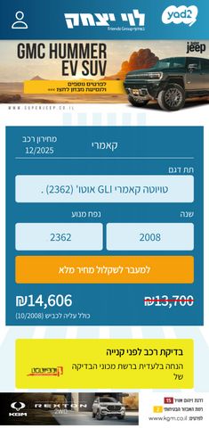 רכב שמור נהגת יחידה יד שנייה שנת 2008 מזגן חדש וחזק עובד מצוין מערכת מולטימדיה חדשה מצבר חדש טסט עד נובמבר 2026 גמיש במחירון נמכר עקב קניית רכב חדש מהחברה