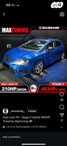 לאון fr מנוע 2000 סטייג 3 480 כח סוס מנוע בנוי גיר ידני דיפרנציאל נעול גג נפתח צמיגי מישלין פיילוט ספורט 5 הרכב מושקע בארגזים טסט לשנה מי שרוצה רשימה מפורטת של כל מה שיש על הרכב שישלח הודעה מתחייב על כל בורג