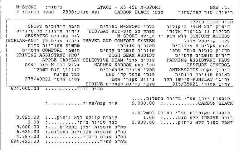 רכב יד ראשונה במצב נדיר , נקנה בארץ ב BMW עם כל התוספות האפשריות. צבא שחור קרבון (שחור כחול) ומושבי מוקה / קפה. רמת גימור M (בתמונות יש פירוט של התוספות) נקי ובמצב חדש! סה"כ 21,000 ק"מ , מדבקה על הרכב, טסט לשנה, נהג יחיד , חניה מקורה ולא ראה שטח אף פעם. בקיצור רכב הצגה